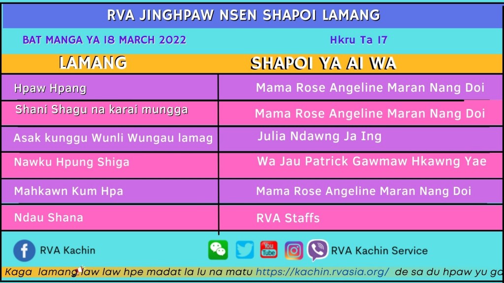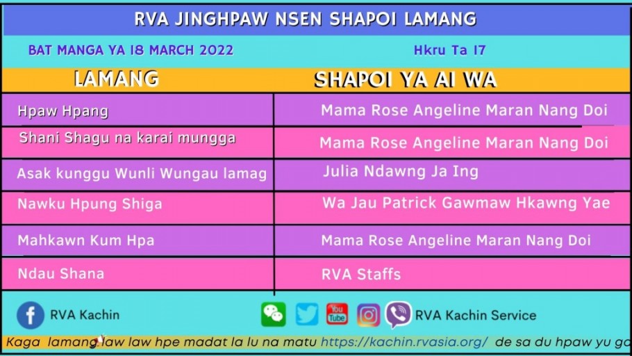 2022 MARCH 18 YA SHANI NA RVA KACHIN JINGHPAW ONLINE RADIO NSEN LAMANG