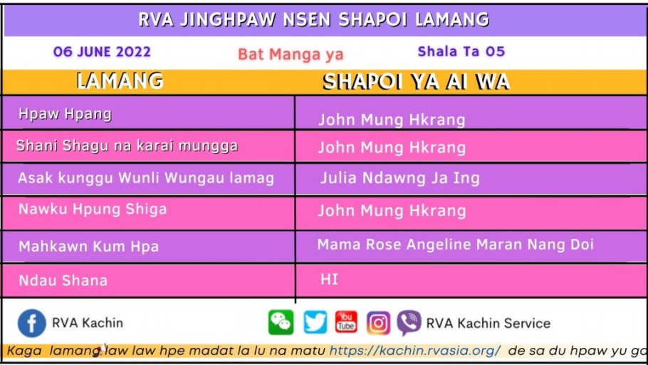 2022 NING JUNE 03 YA SHANI NA RVA KACHIN JINGHPAW ONLINE RADIO NSEN LAMANG
