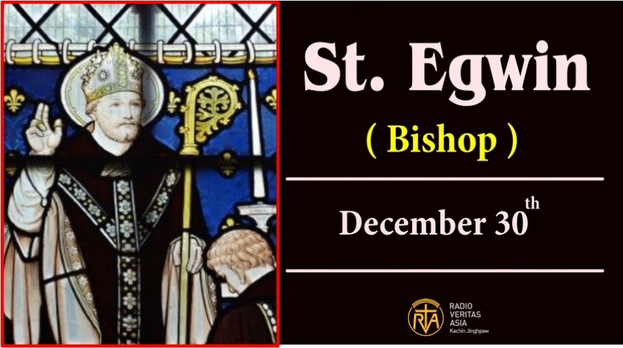 Saradaw Egwin gaw, Roma mare de jamjau hkawm nhtawm sa du kau da ai hpang, England mungdan de bai nhtang du wa ai shaloi, Evensham mare kaw, Benedictine Jau jawng wa hpaw ya lai wa sai. Shi hte shi a Jau ni a lapran na manghkang ni mung galai shai wa sai, shi a myit jasat kaja hpe mu nna, masha law law makam masham hta ngang wa lu ma ai.